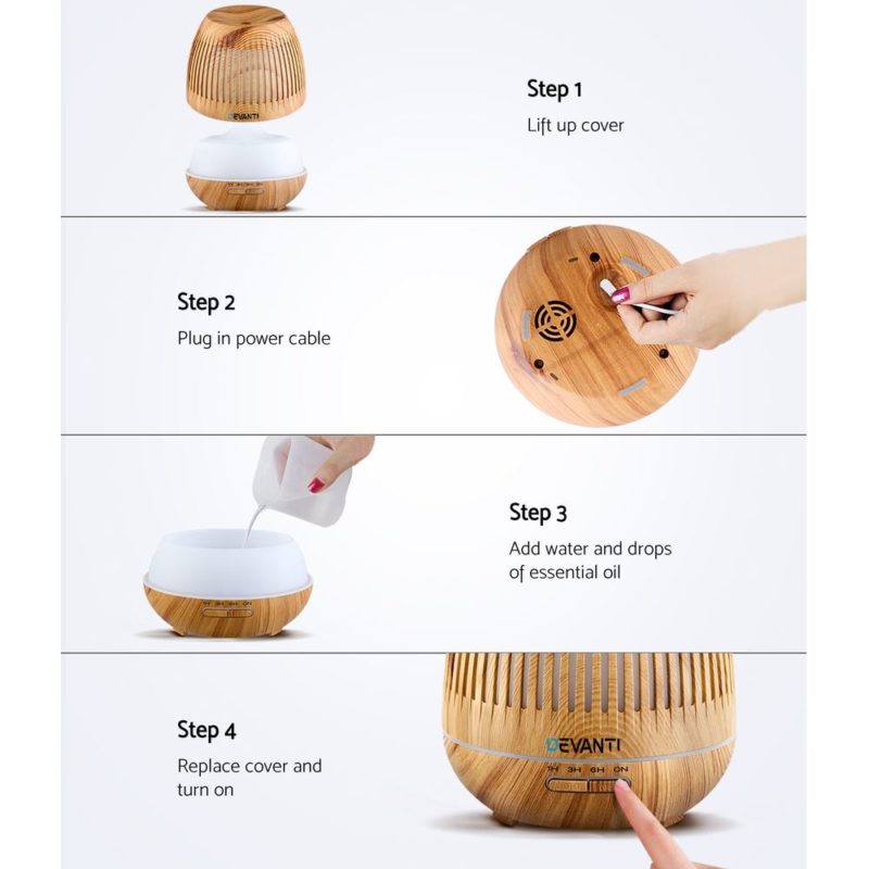 Modern life can be stressful and unforgiving, especially to your health. All the more that you should learn to relax and rejuvenate your senses to face the challenges. And that is where our Aroma Diffuser can help you, to restore and maintain your aura. With its wood grain design, the diffuser actually performs four functions in one device: humidifier, purifier, night light and aromatherapy. You can set the diffuser to work continuously for up to 12 hours by selecting your choice of intermittent or continuous mist modes. Not least, you can also adjust the level of brightness or select your desired night light colour with its 7-colour LED light to give you soothing hues all through the day or night.